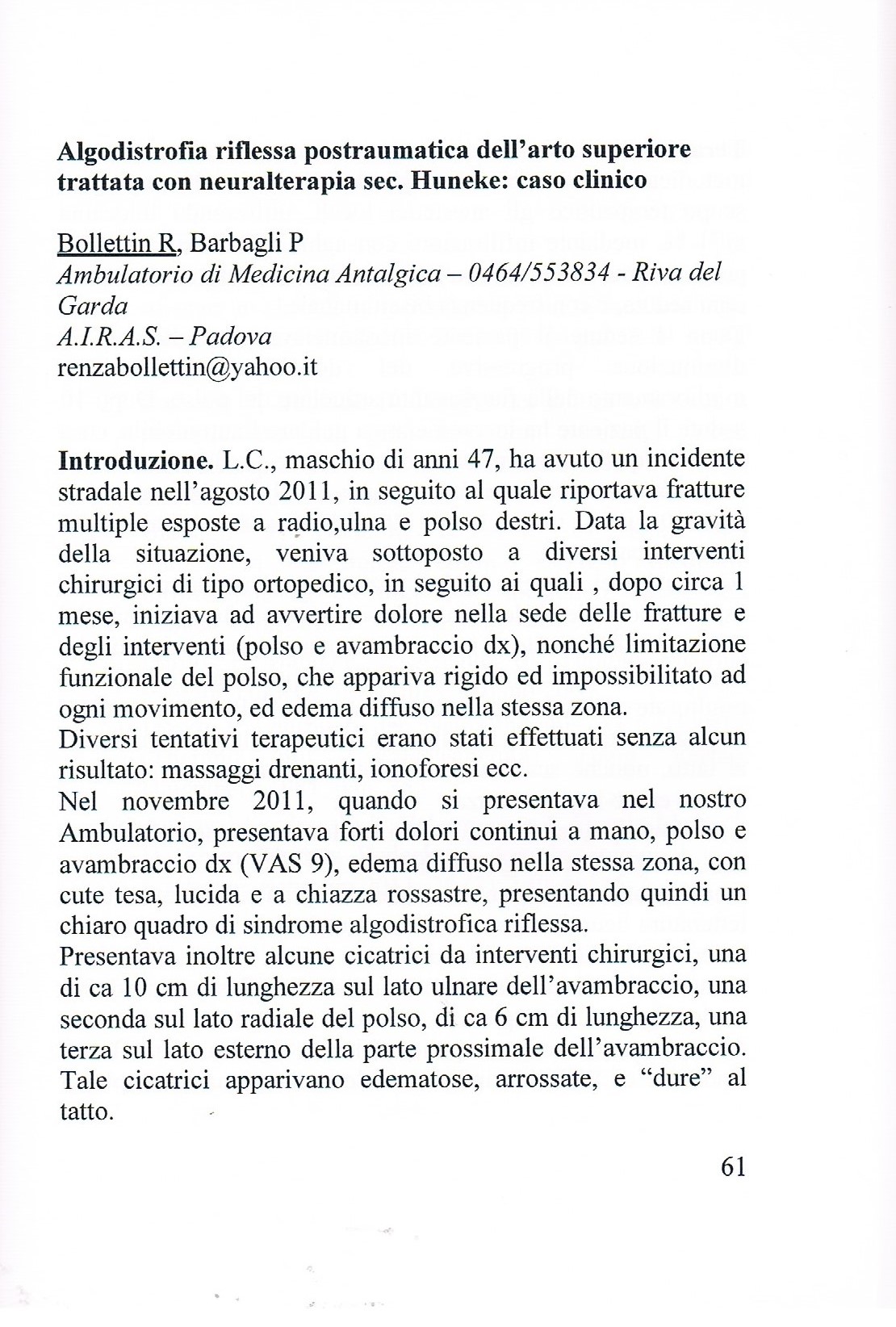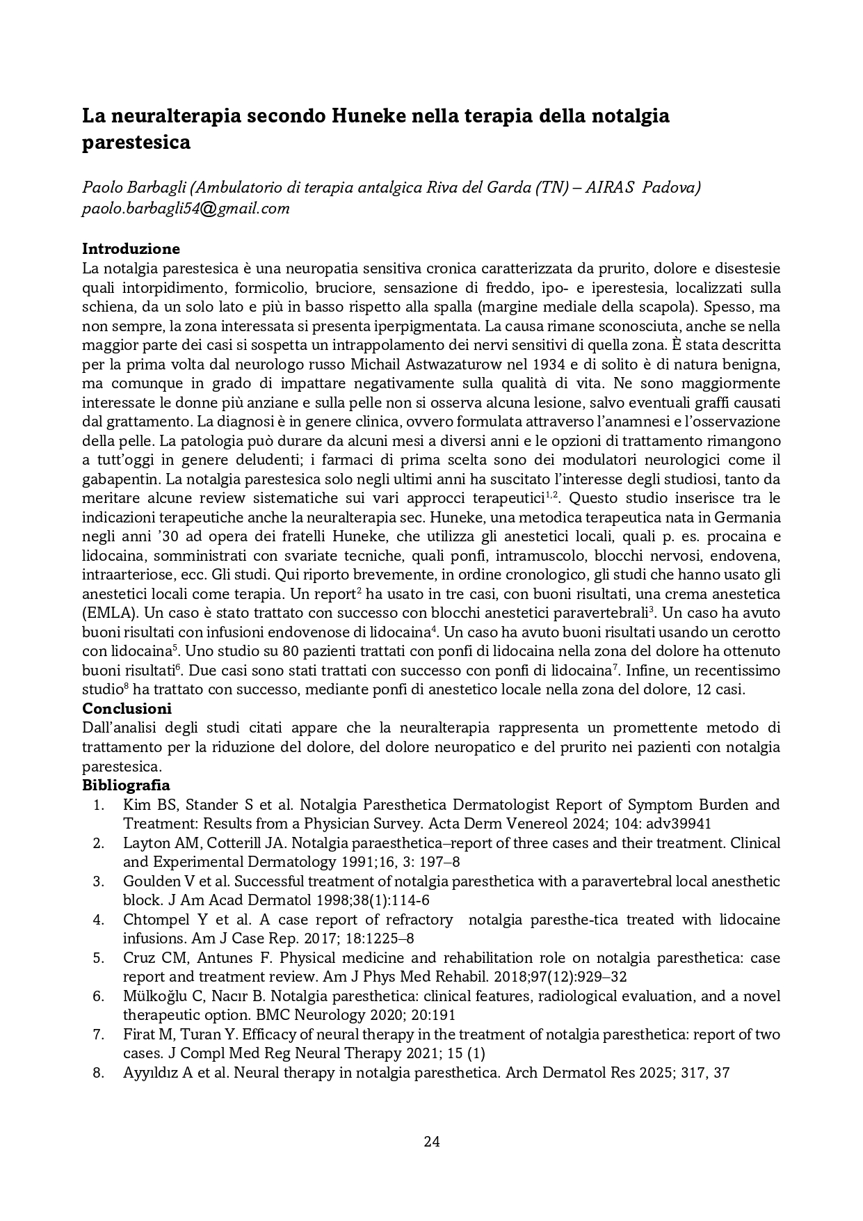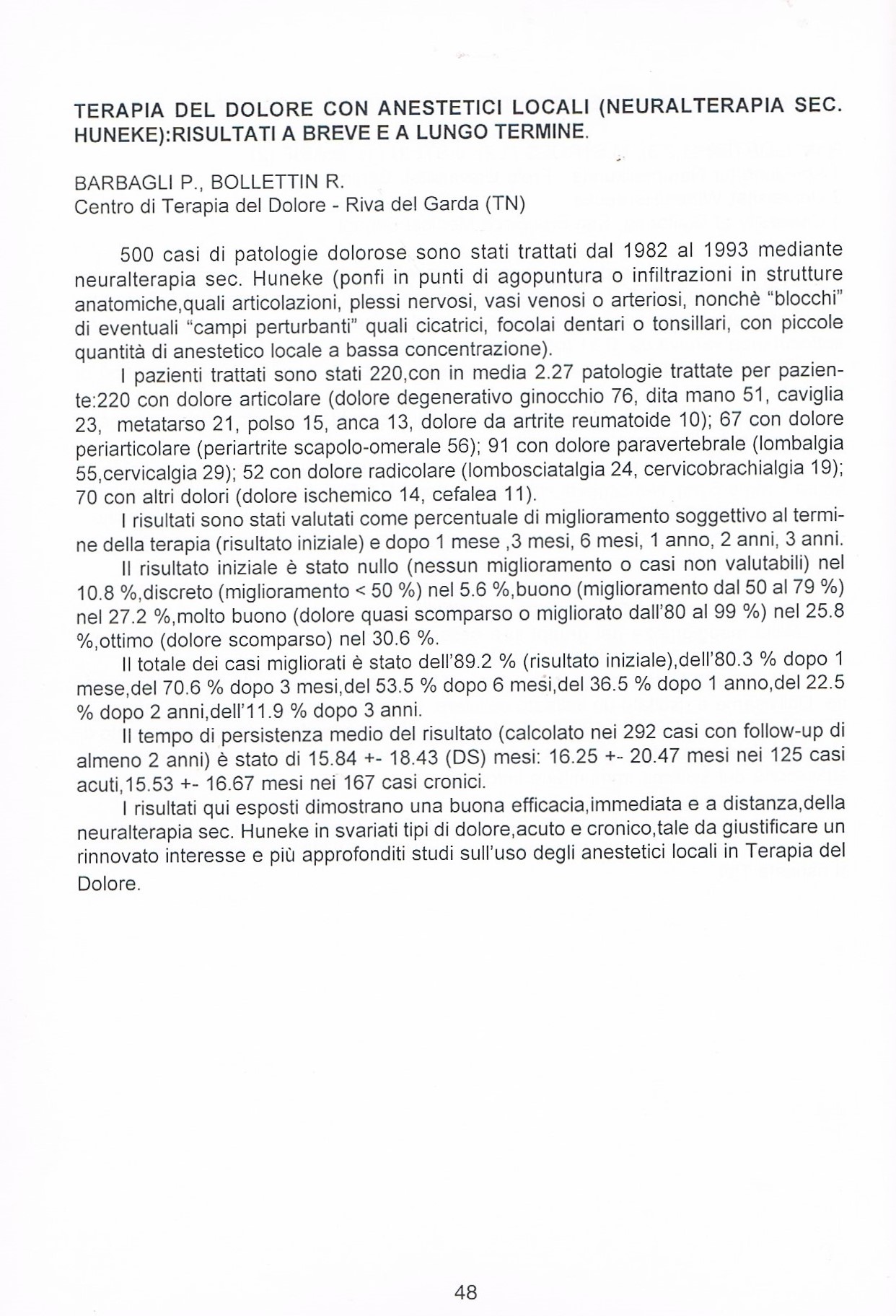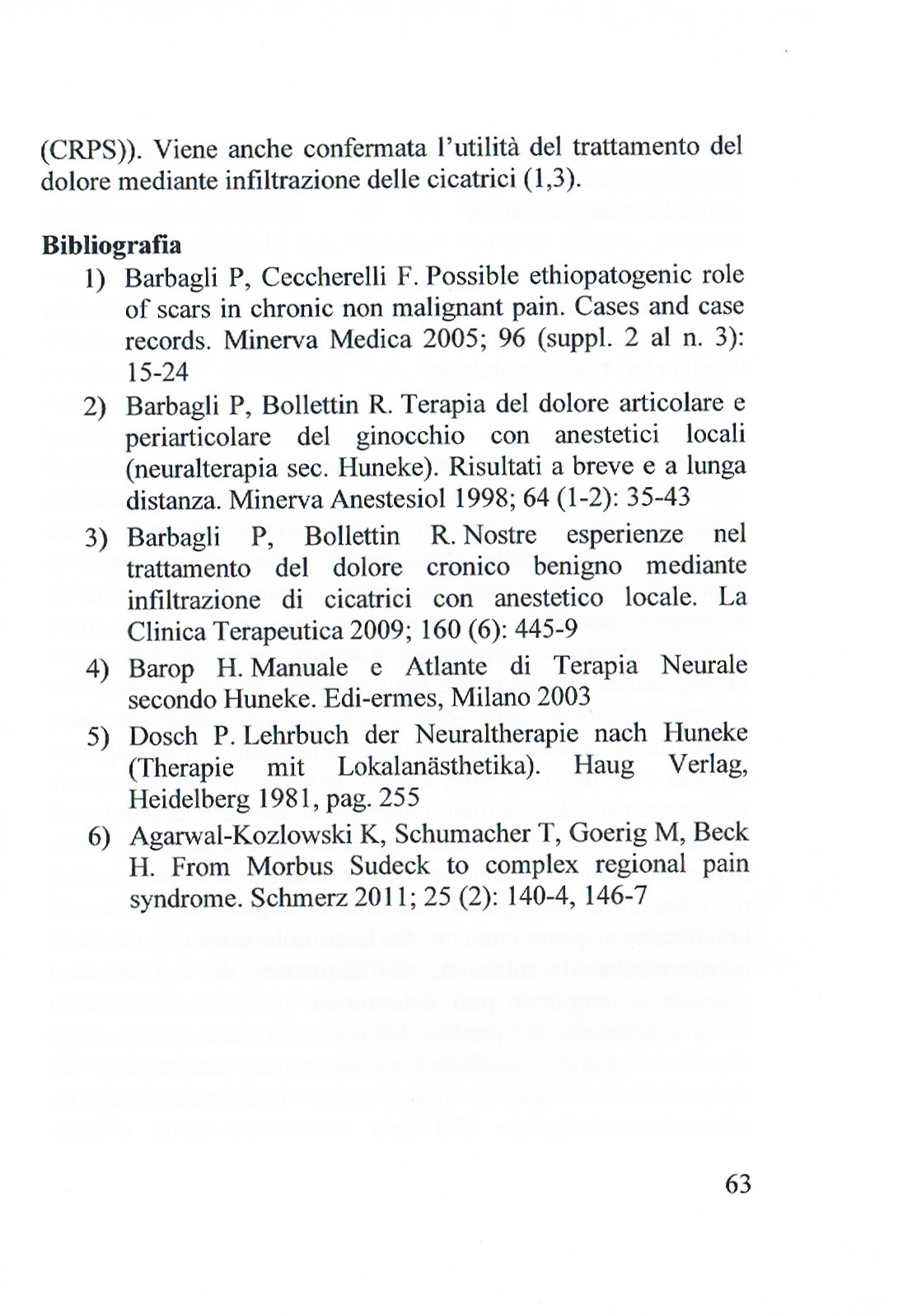 5. Barbagli P. Neuralterapia e dolore. Esperienze cliniche 1982-1995. Tesi A.I.R.A.S., Padova 1995.
