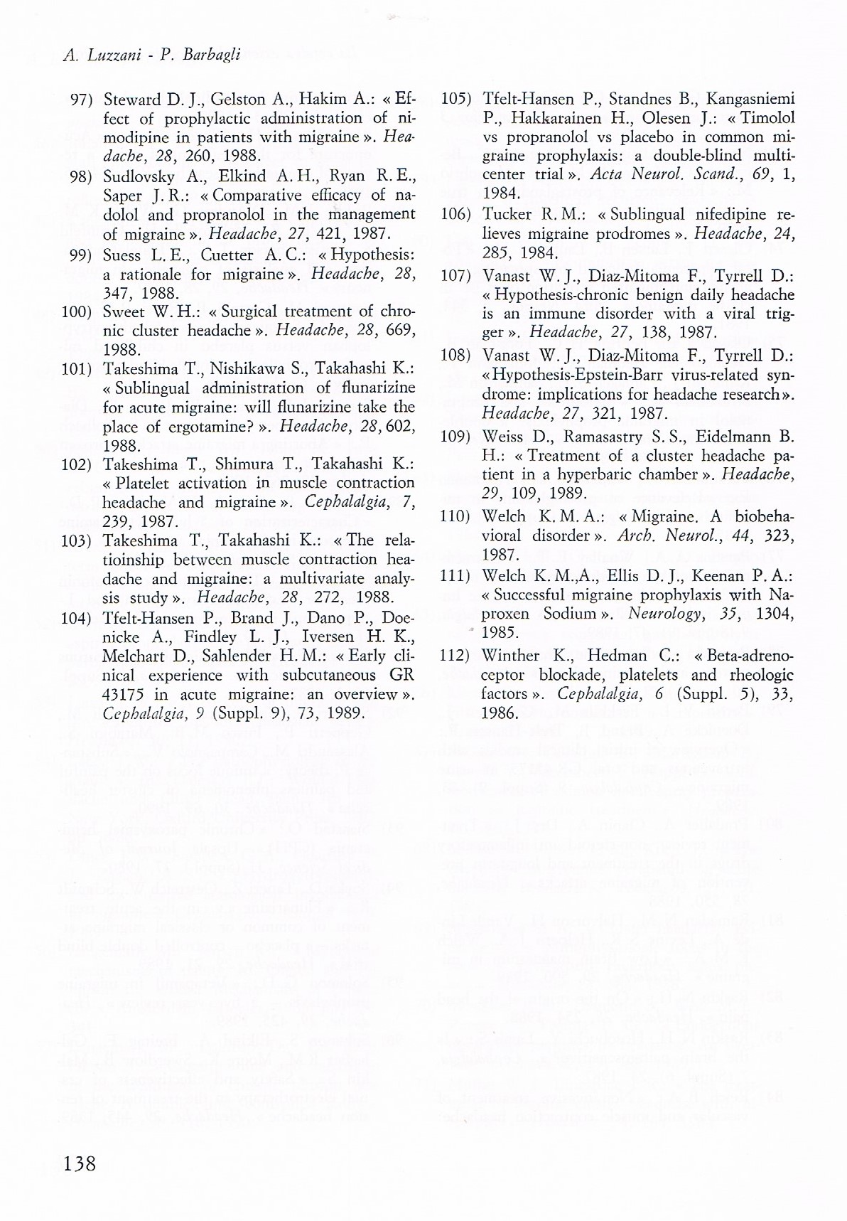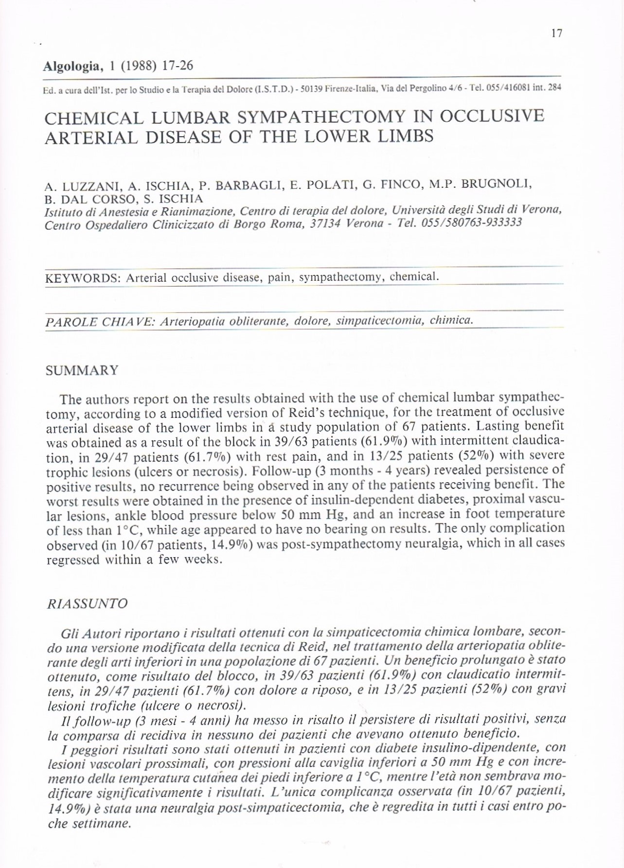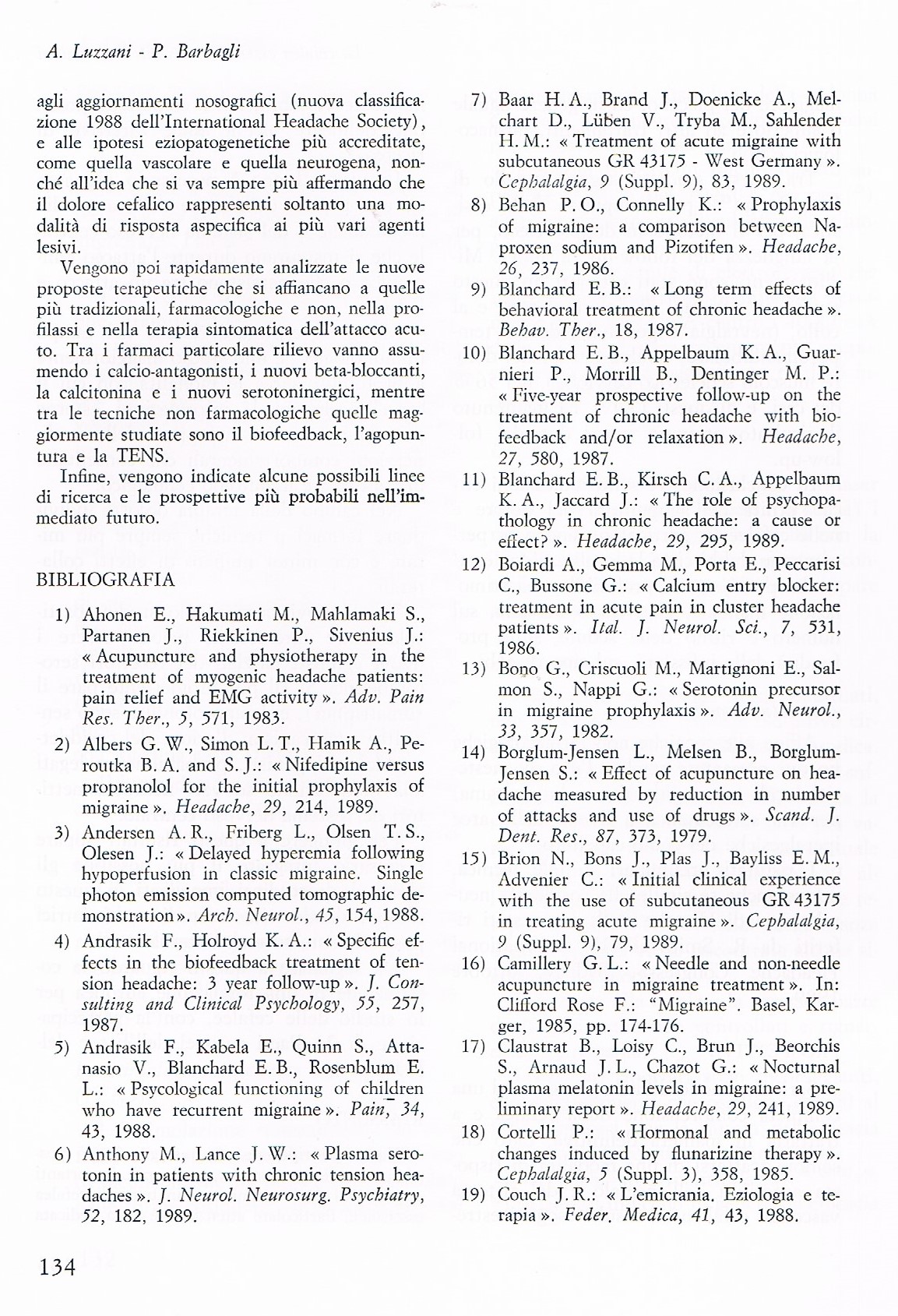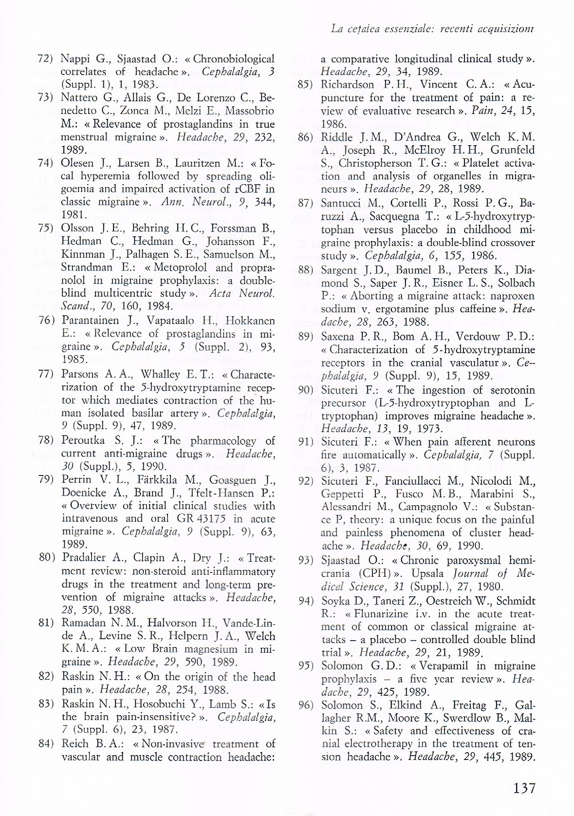 5. Barbagli P. Neuralterapia e dolore. Esperienze cliniche 1982-1995. Tesi A.I.R.A.S., Padova 1995.