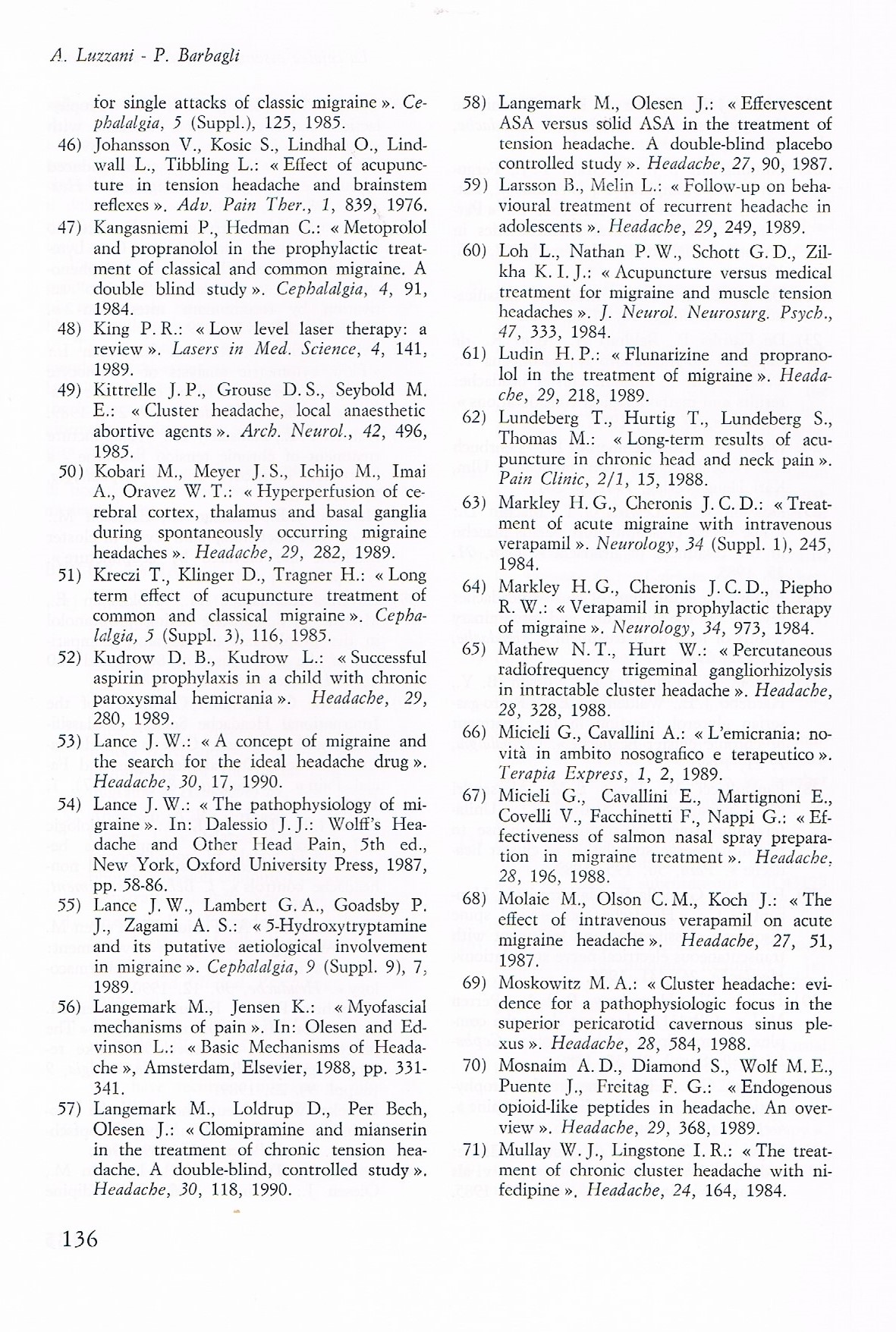 6. Barbagli P, Bollettin R, Ceccherelli F. Agopuntura (ago a secco) versus neuralterapia (anestetico locale) nella terapia delle lombalgie benigne. Risultati immediati e a distanza. Min Medica 2003; 94 (4 suppl. 1): 17-25.