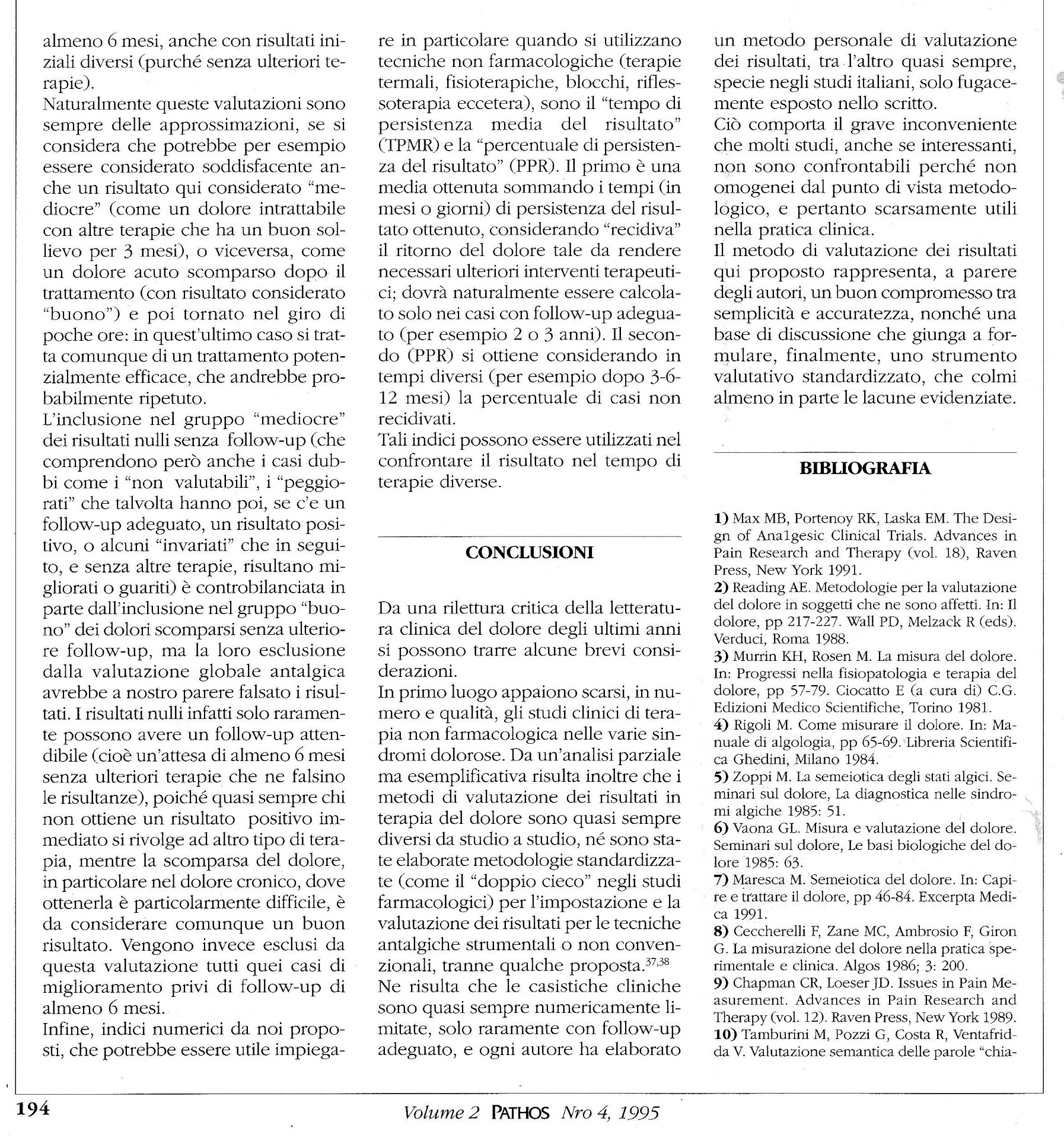 — PUBBLICAZIONI SUL DOLORE —