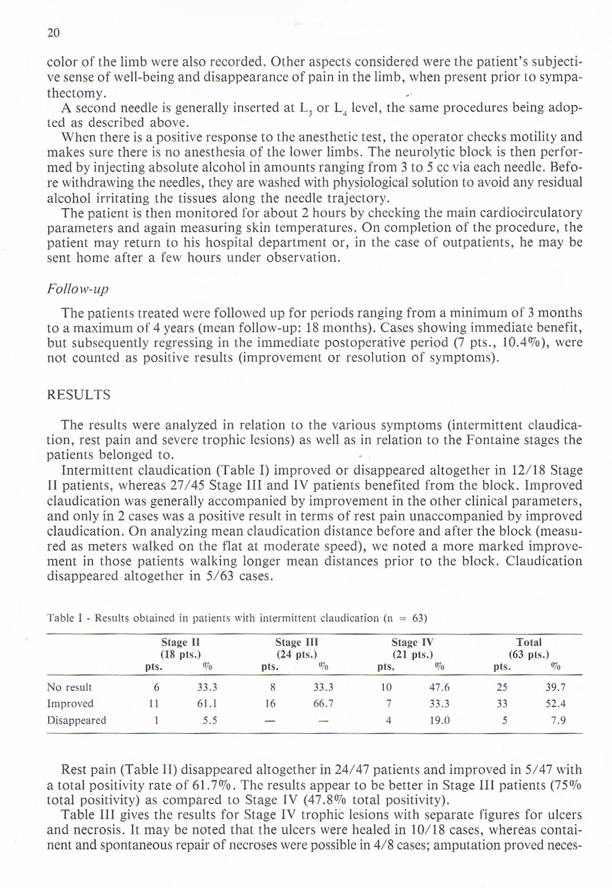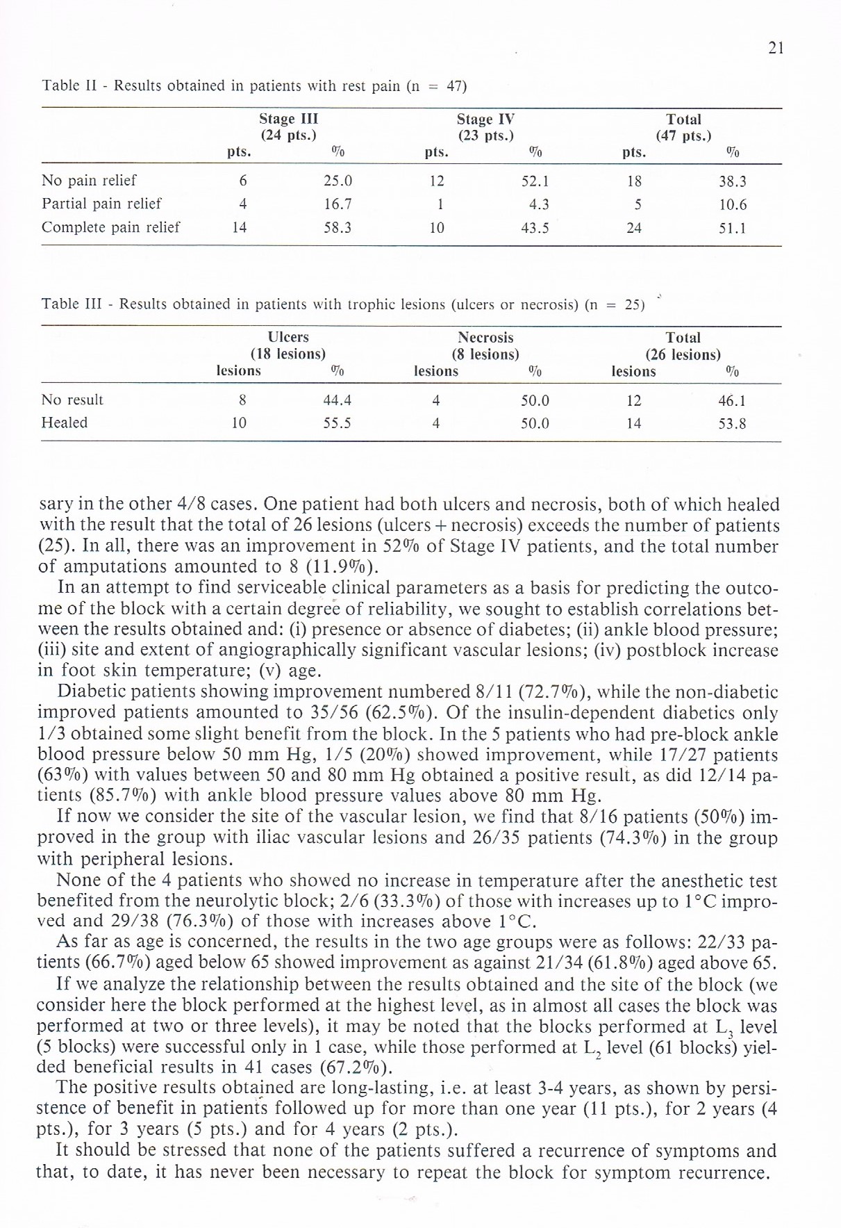 In una casistica personale fino al 1998 (7), in 62 casi di lombalgia trattati con neuralterapia il risultato al termine della terapia è stato ottimo (sparizione del dolore) nel 40 % dei casi, molto buono (dolore quasi scomparso) nel 24 %, buono (dolore migliorato almeno del 50 %) nel 32 %, scarso o nullo nel 4 %.
