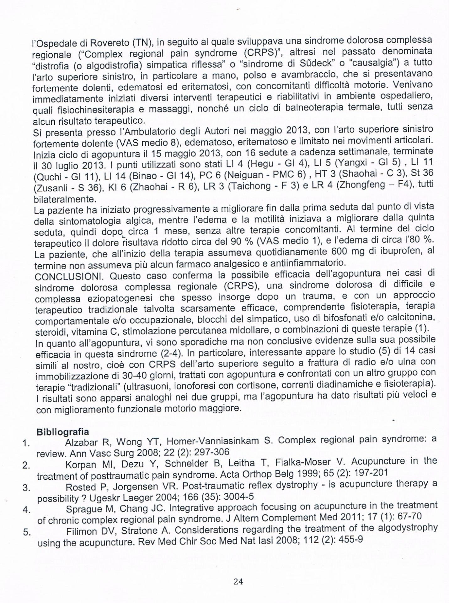 10. Barbagli P, Bollettin R. Confronto tra due tecniche riflessoterapiche (ago a secco - anestetico locale) nel dolore cervicale benigno: dati preliminari. G Ital Riflessot Agopunt 1998; 10 (1): 41.