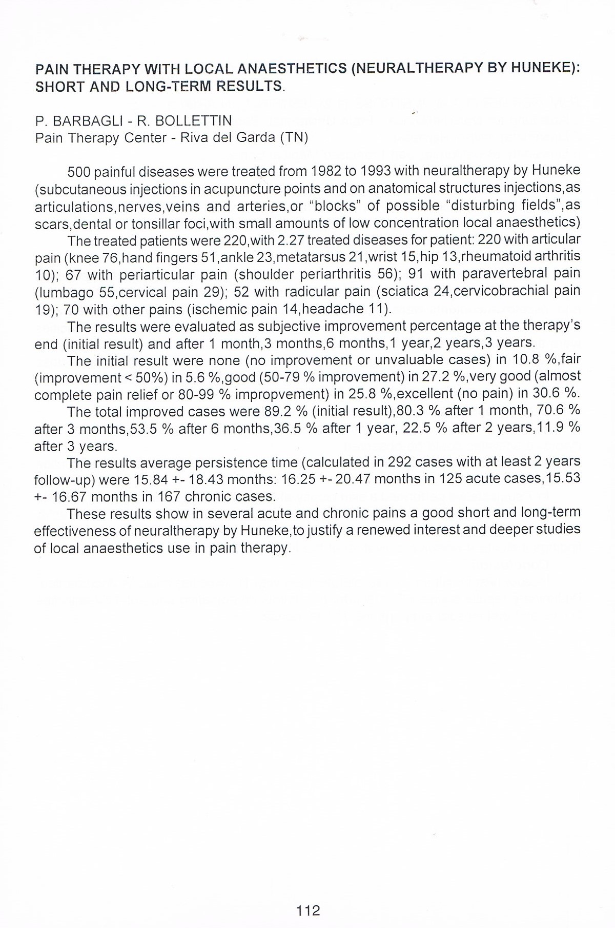 7. Barbagli P. Risultati della neuralterapia nella lombalgia. Dati non pubblicati, 1998.