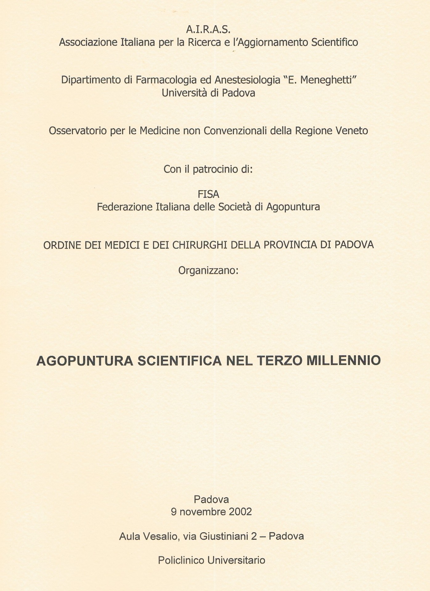 A.I.R.A.S. (Associazione Italiana per la Ricerca e l'Approfondimento Scientifico) - Padova
