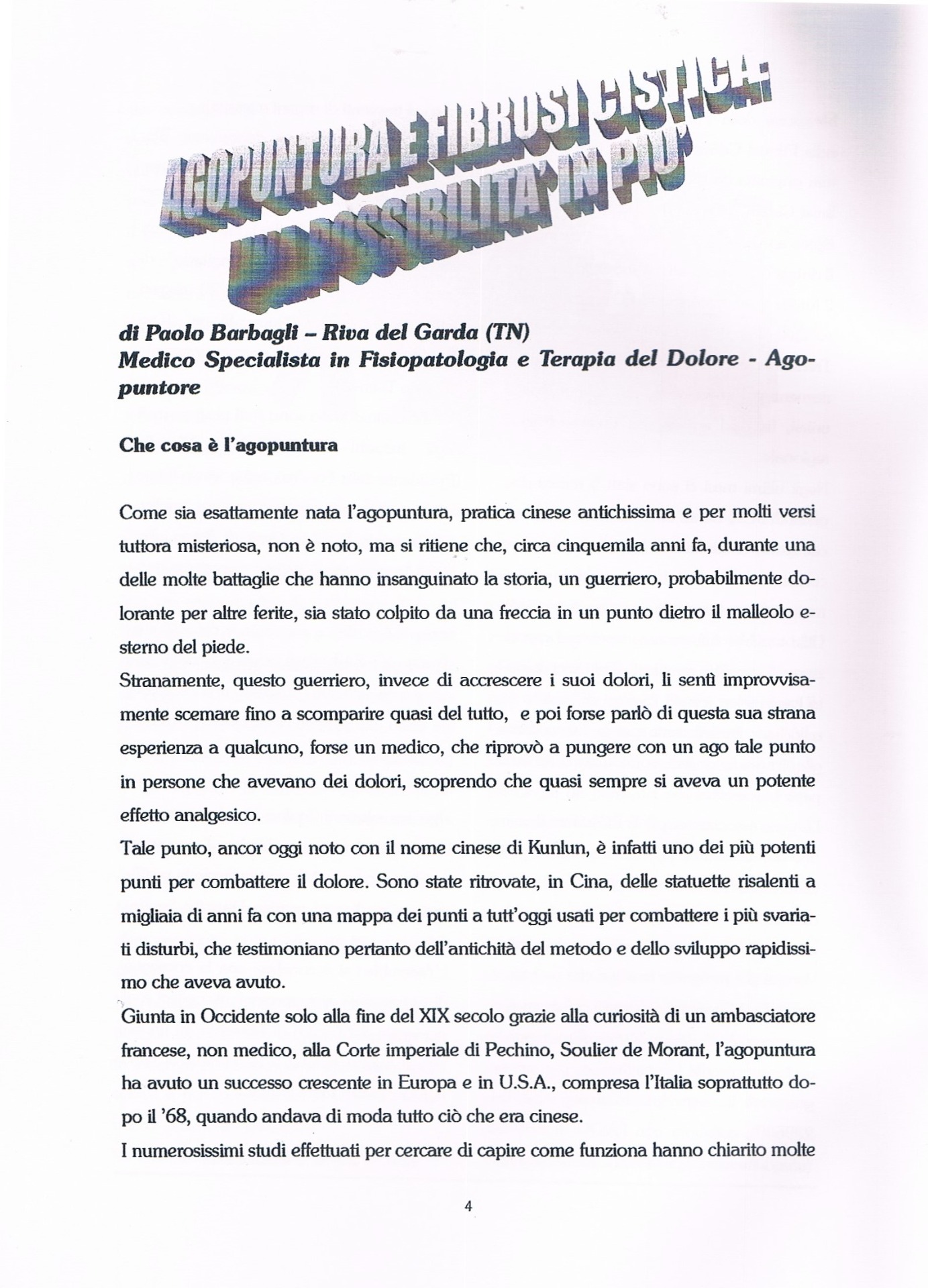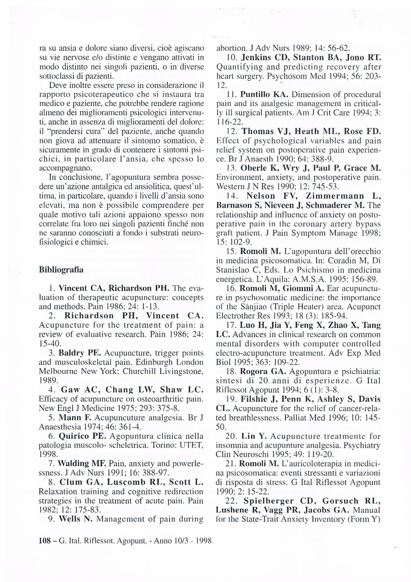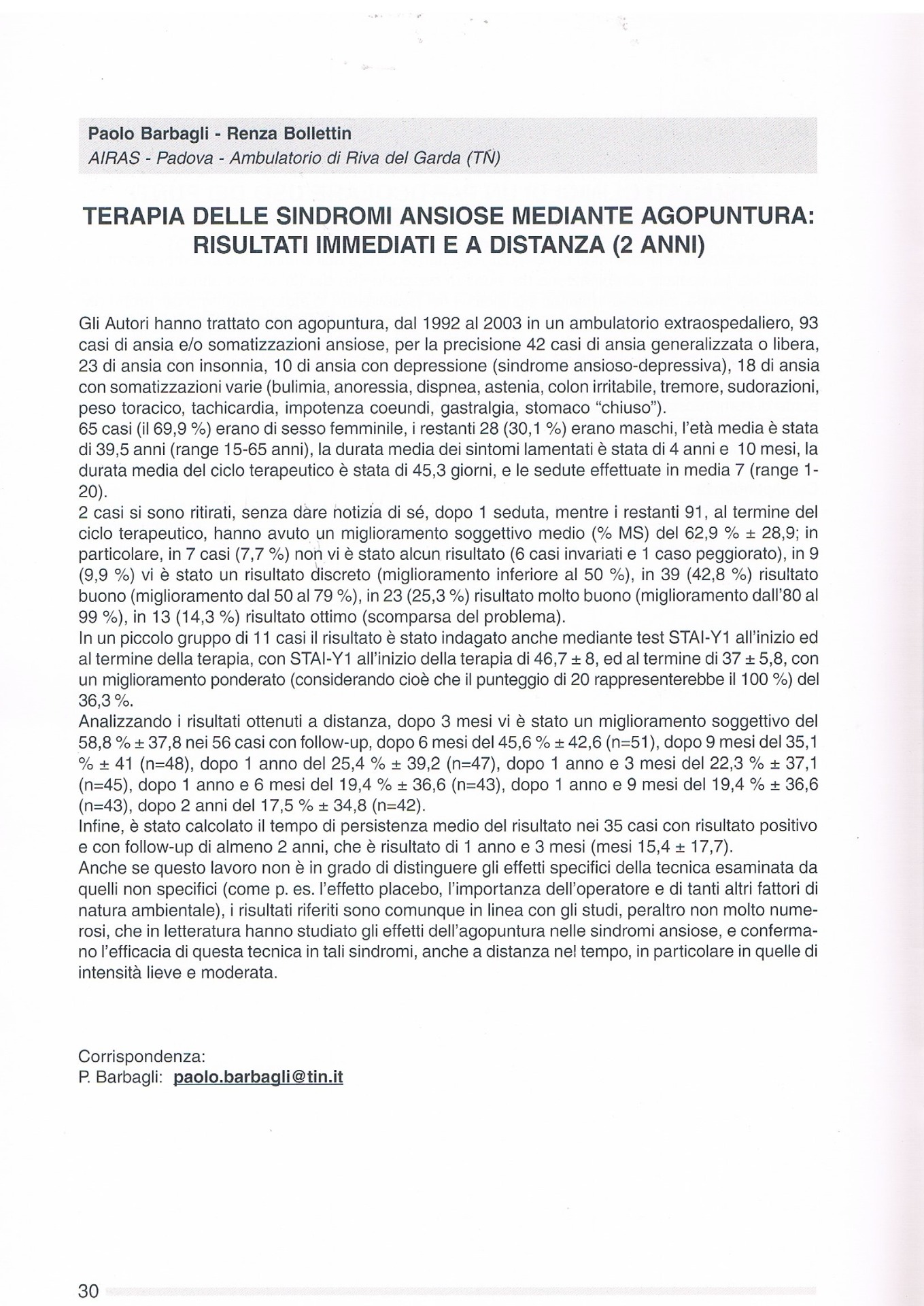 Barbagli P., Bollettin R. Is depression a prognostic factor of the antalgic reflex therapy ? In: Abstract book: COST B4 - Unconventional medicine at the beginning of the third millennium - Time for integration. Pavia 4-6 giugno 1998, pag. 163